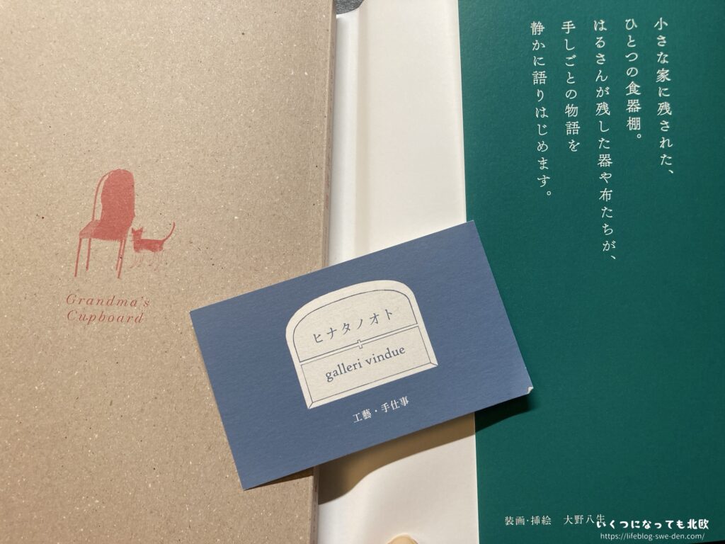 さてさて、長くなりましたが、今回のブログの本題。稲垣さんのもうひとつの著書『おばあちゃんの食器棚』を読んだ感想です。稲垣さんとのご対面がきっかけでこちらの読書が始まりました。いつもマイペースな私。約1年かけて、この2026年にようやく完読。少しずつ読んでいたのです。飛行機の中でも、電車の中でも、デンマークやスウェーデンの自宅でも。ヒナタノオトのショップカードをしおりにしていました。