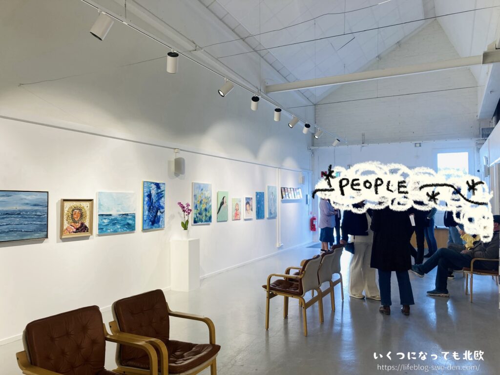 受付をした際に、住所や出身地などをいっさい聞かれなかったことも少し驚きました。開催当日の作品リストには、出展者の名前と作品名、使用された画材、作品の価格だけが記載されていたのです。スウェーデンに住んでいてよく感じる「差別しないようにしている」空気をここでも感じましたが、もしかしたらどこの誰であろうとウェルカムで、ただ単に全然気にしていないだけなのかもしれません。