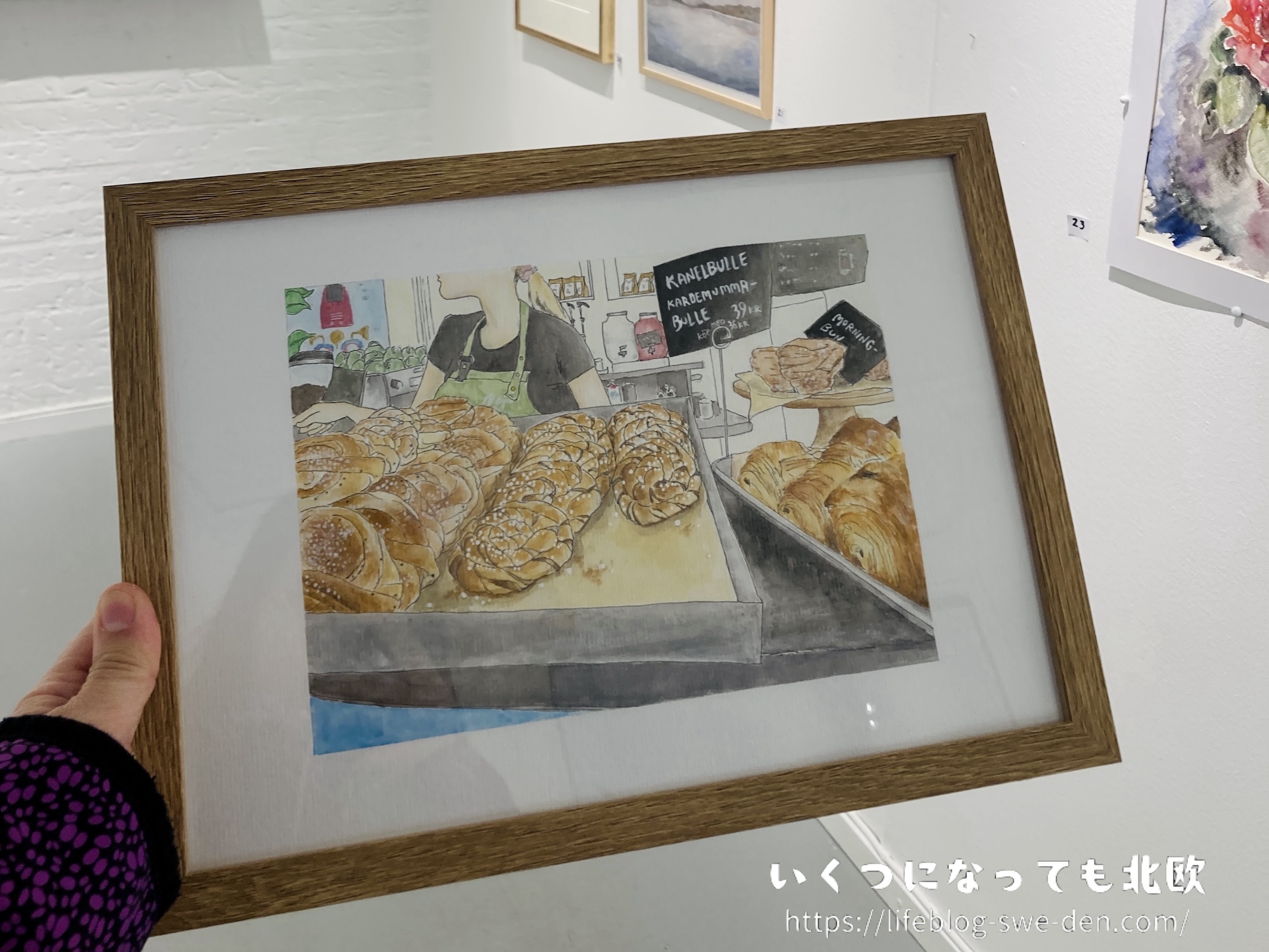 展示されていた自分の作品を自ら壁からはずし、受付にて自分の作品番号を伝え、完了。Tack!(ありがとう)とスタッフさんと言いあってお別れ。